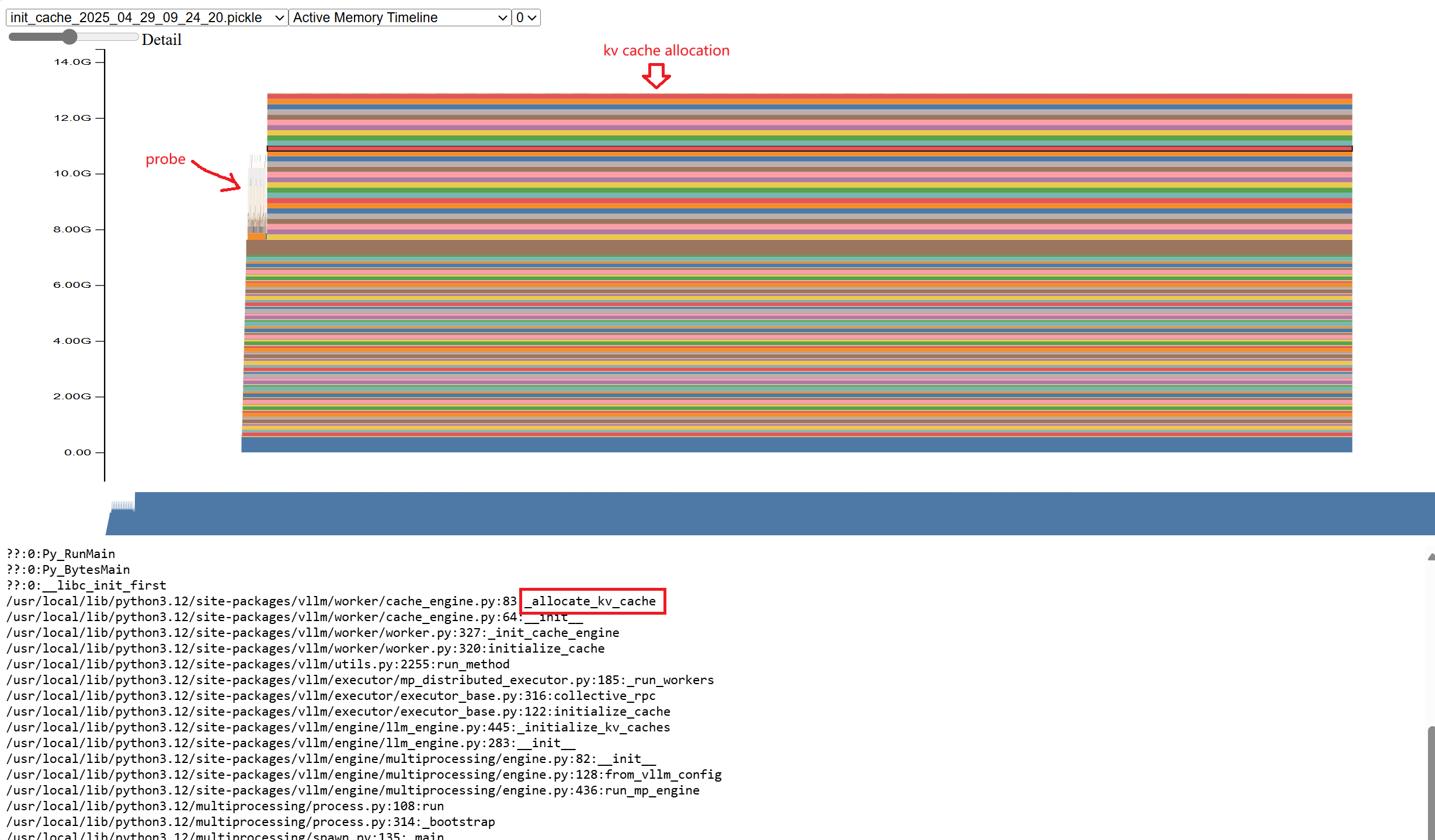 As you can see, if you run probe once, a certain amount of memory will be allocated. The remaining memory is allocated to kvcache.