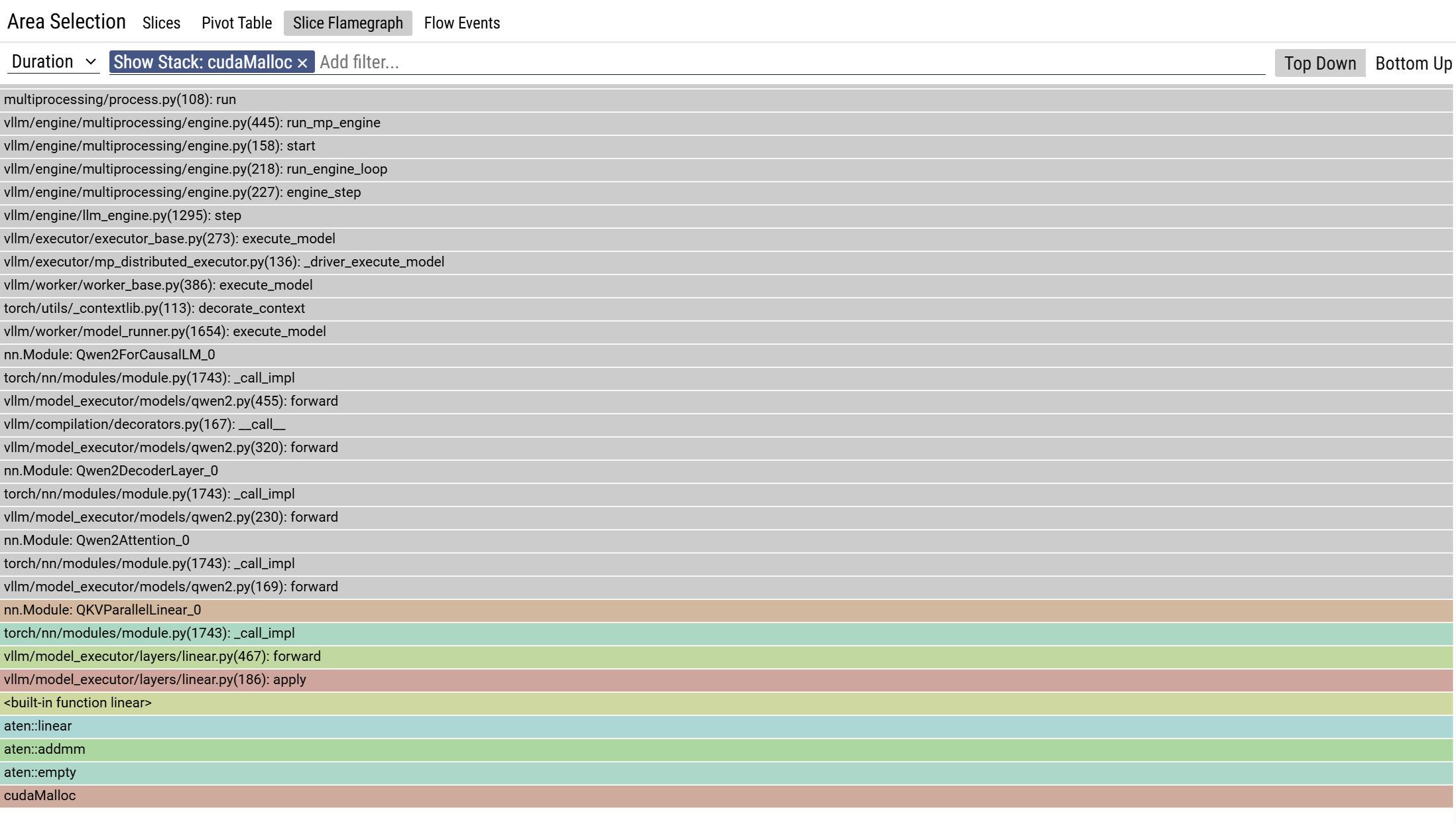 Traversing all the cudaMalloc call stacks, only the activation parameter yields a cuda memory allocation. kvcache does not trigger cudaMalloc.